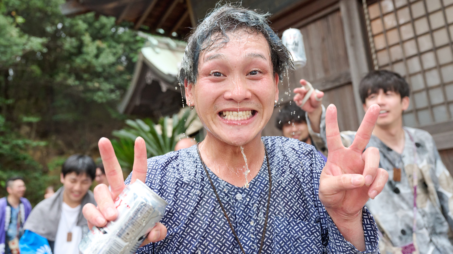 塩生の秋祭り「塩生疫神社秋季大祭」では、昔から伝わる三台の千歳楽が繰り出します。「上、下(かみ・しも)」「南(みなみ)」「奥、田淵(おく、たぶち)」の3つの青年団が揃いの法被も勇ましく、千歳楽を担ぎ上げます。