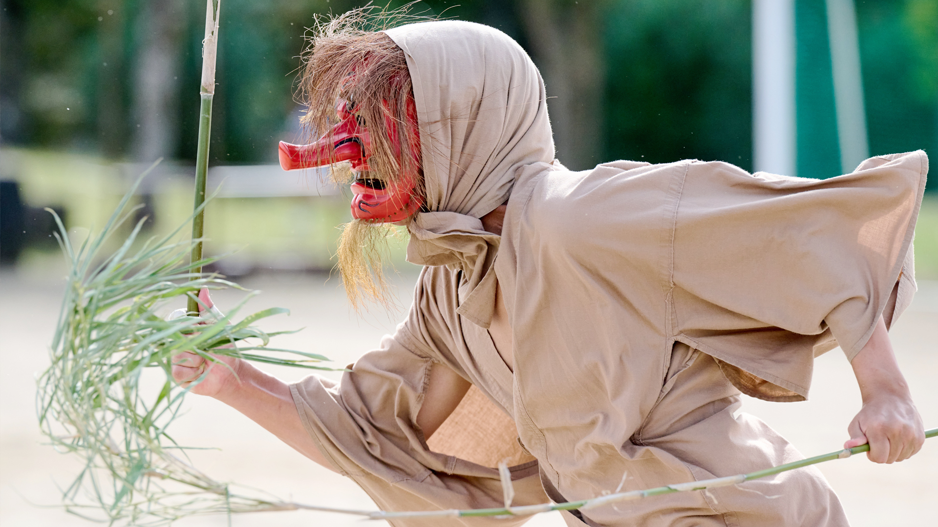At its heart, the festival features mysterious masked figures known as Becha—men wearing long-nosed tengu-like masks—who wield bamboo branches and playfully swat at children and festival-goers. This symbolic act is meant to drive away evil spirits and bring good health for the coming year. Local legend says that being hit by a Becha ensures a year of good health and safety!